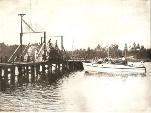 The top picture was taken on the beautiful Bonshaw River and the boat shown in the picture is the same boat that is seen crossing through the drawbridge at Dunedin. Looking closely one can see that the ladies in the boat are dressed up and one might assume they were in their “Sunday-go-to- meeting” attire. If anyone views these scenes and knows the history of this boat, please leave a comment. Meanwhile, those who are familiar with this area will appreciate the photographs. The year these photographs were taken is not known.