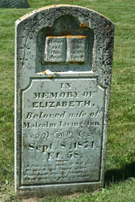 In memory of Elizabeth, beloved wife of Malcolm Livingston, died September 8, 1874, age 58