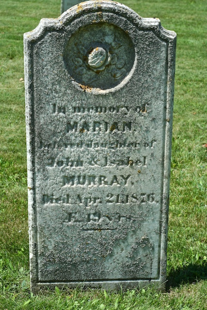 In memory of Marian, beloved daughter of John & Isabel Murray, died Apr. 21, 1876, age 19 years