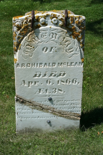In memory of Archibald McLean, died April 6, 1866, age 38