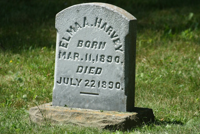 Elma A. Harvey, born March 11, 1890, died July 22, 1890