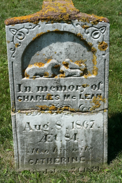 In memory of Charles McLean, August 8, 1867, age 84, also his wife Catherine, died Jan. 21, 1879