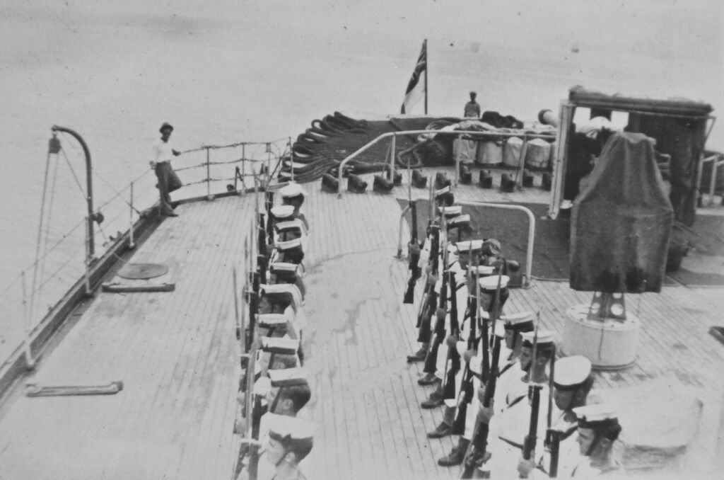 Previous Image Next Image Honor guard drawn up at the “Present arms” for Peruvian official visitor Honor guard drawn up at the “Present arms” for Peruvian official visitor