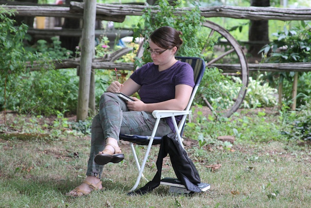 Abby sketching in the park