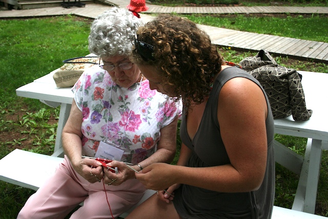 Previous Image Next Image Art in the Park August 20 2011 18 Annie Boyle teaching Erica Ross how to knit