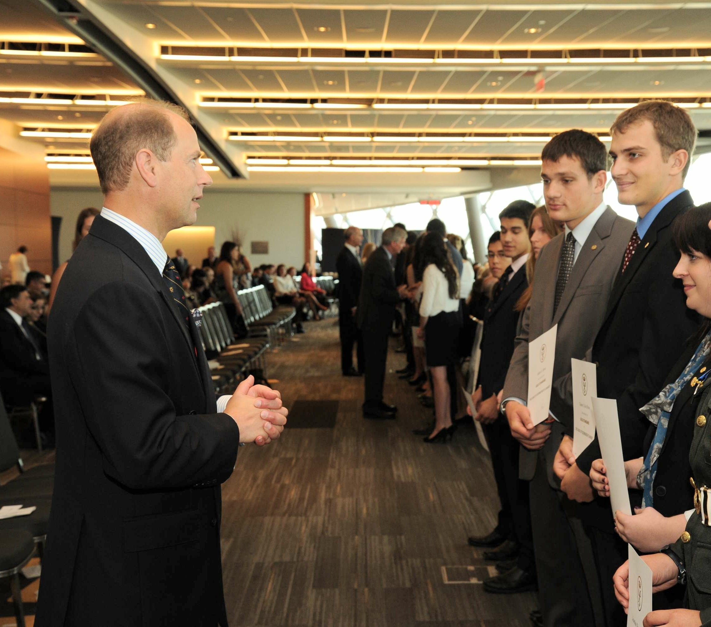Previous Image Next Image Prince Edward talks with Tanner Brine shortly after he is presented with a gold level Duke of Edinburgh Award Prince Edward talks with Tanner Brine shortly after he is presented with a gold level Duke of Edinburgh Award