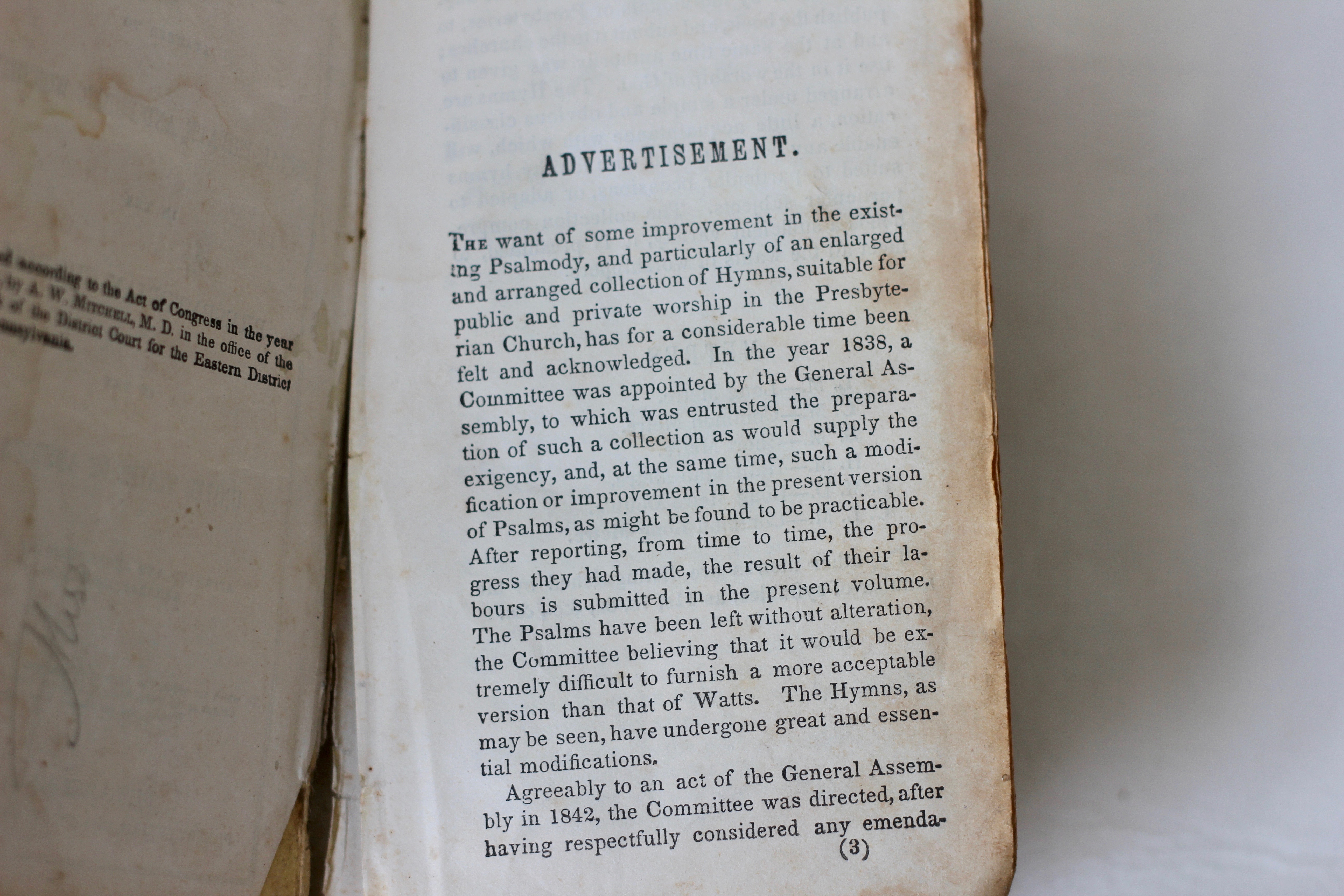 Inside Hymn book 1843 (Donated by Beer Family)