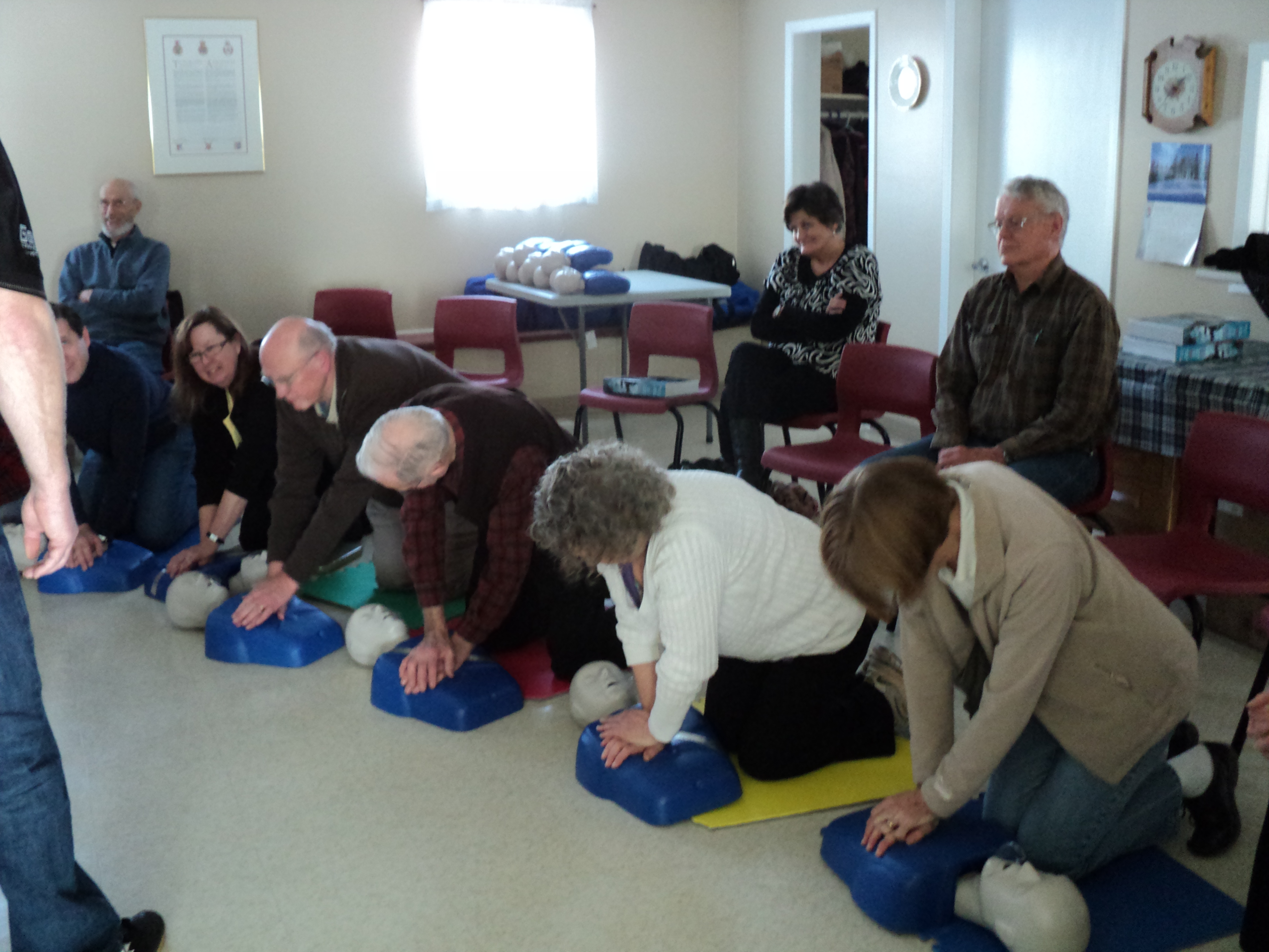 participants working hard to master the CPR technique