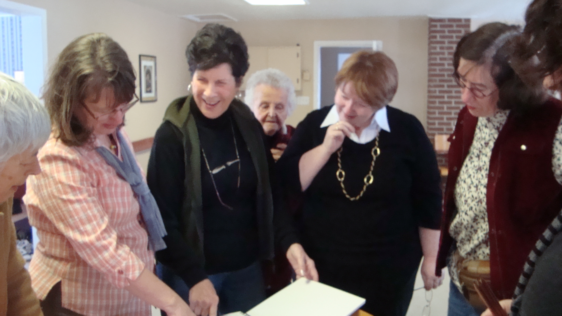 Previous Image Next Image Lois Gass shares her drawing with artist Julia Purcell and fellow classmates