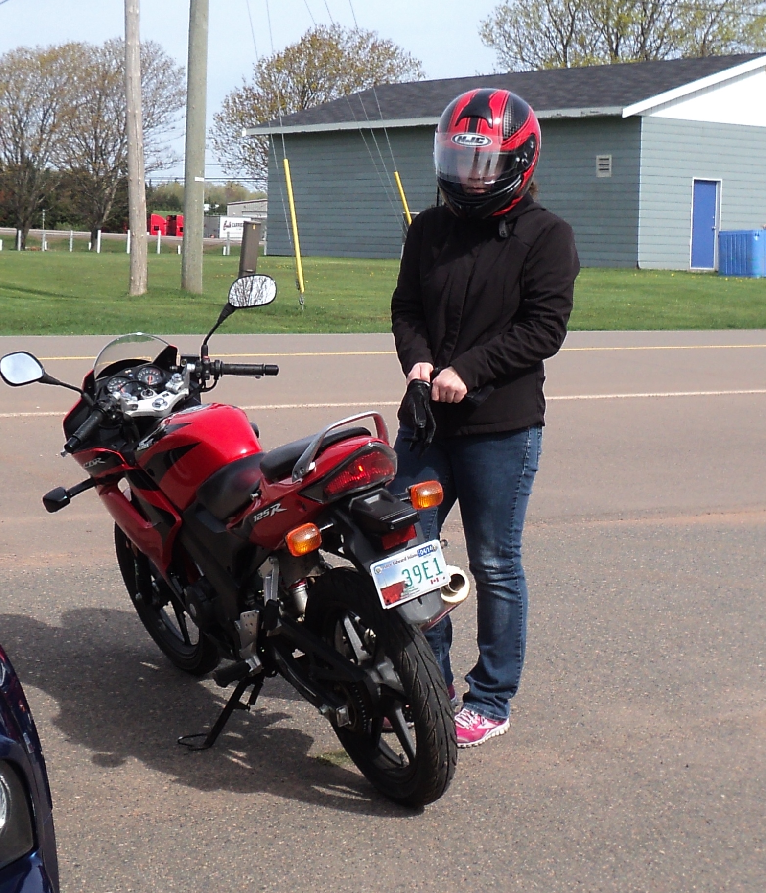 Previous Image Next Image DSC02004 Emily Ross has to leave early to study for an exam. She takes off on her new red Bike