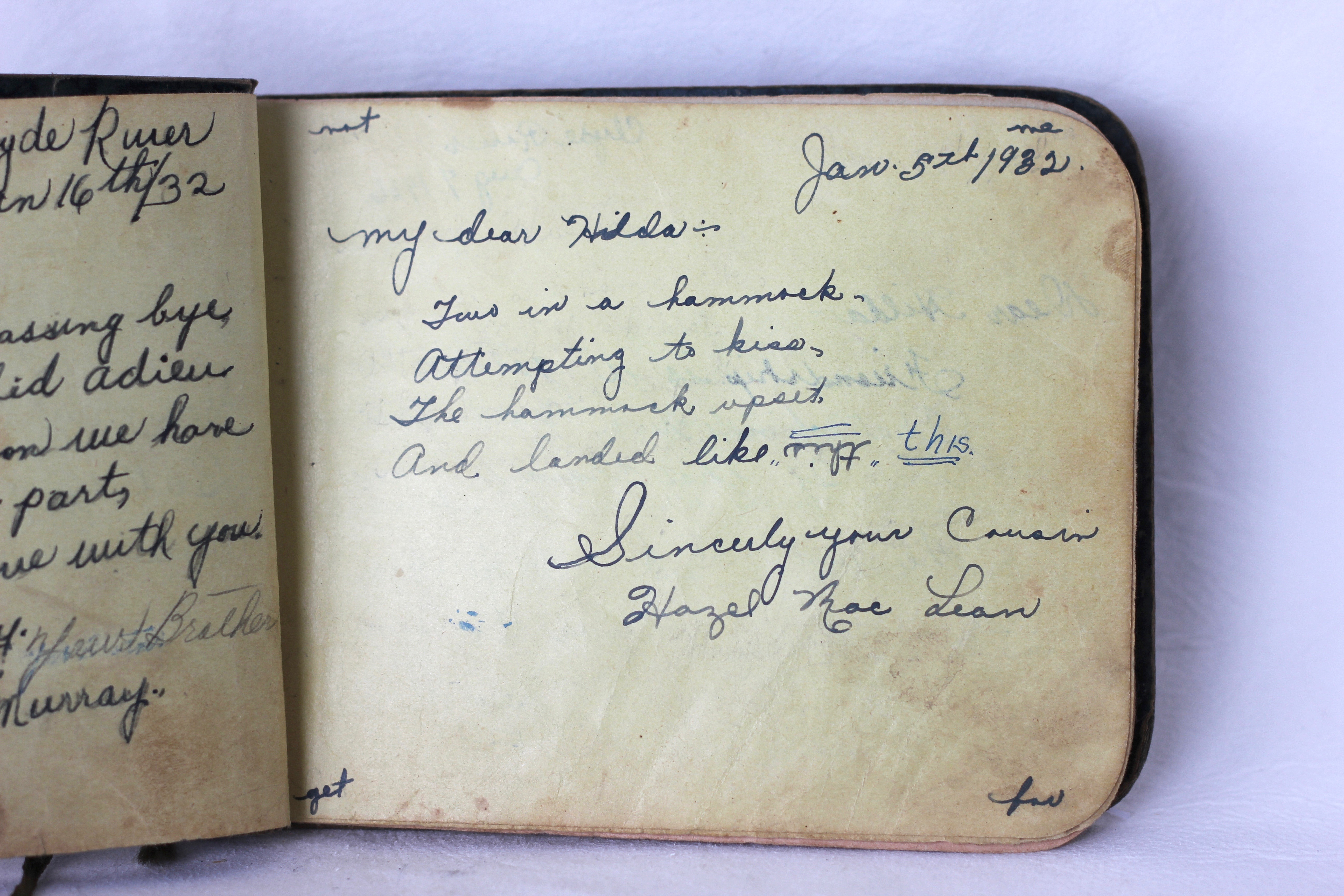 Autograph written by Hazel (MacLean) Beer for Hilda