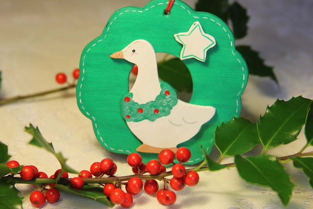 Wooden wreath with duck from craft fair
