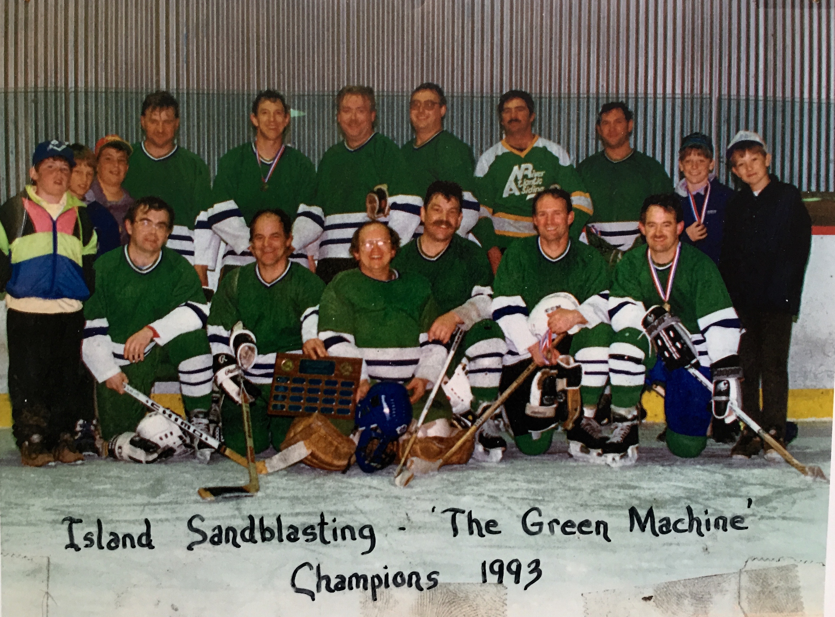 BACK ROW: Fans (MacPhail, MacPhail, Gallant), Brian MacKinley, Karl Bain, Val Murray, Neil Shaw, Ken MacPhail, John Bain, Fans (Tremere, Burns); FRONT ROW: Bobby MacEachern, Gary Tremere, Wilfred Bain, Barry Gallant, Gary Larter, Kent Larter