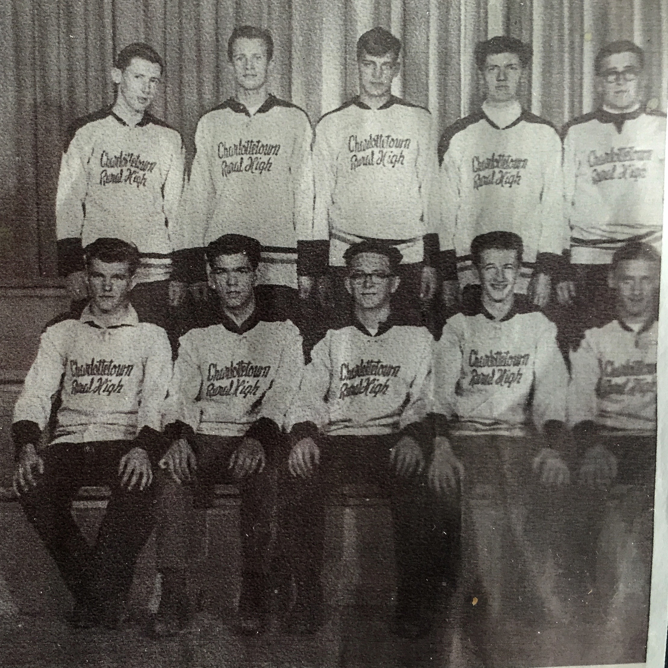 Charlottetown Rural All Star – 1963-64 – BACK ROW: Butch McGee, Barry Craswell, Howard Ellis, Fred Coady, Mike MacDonald; FRONT ROW: Ron MacKinley, Mike McCloskey, Paul Jelley, Dooley Pitcairn, Gordon Ellis