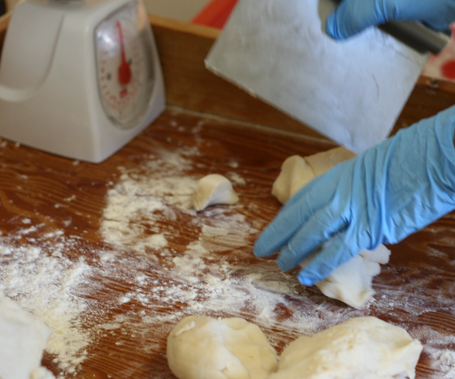 Dough is cut in portions