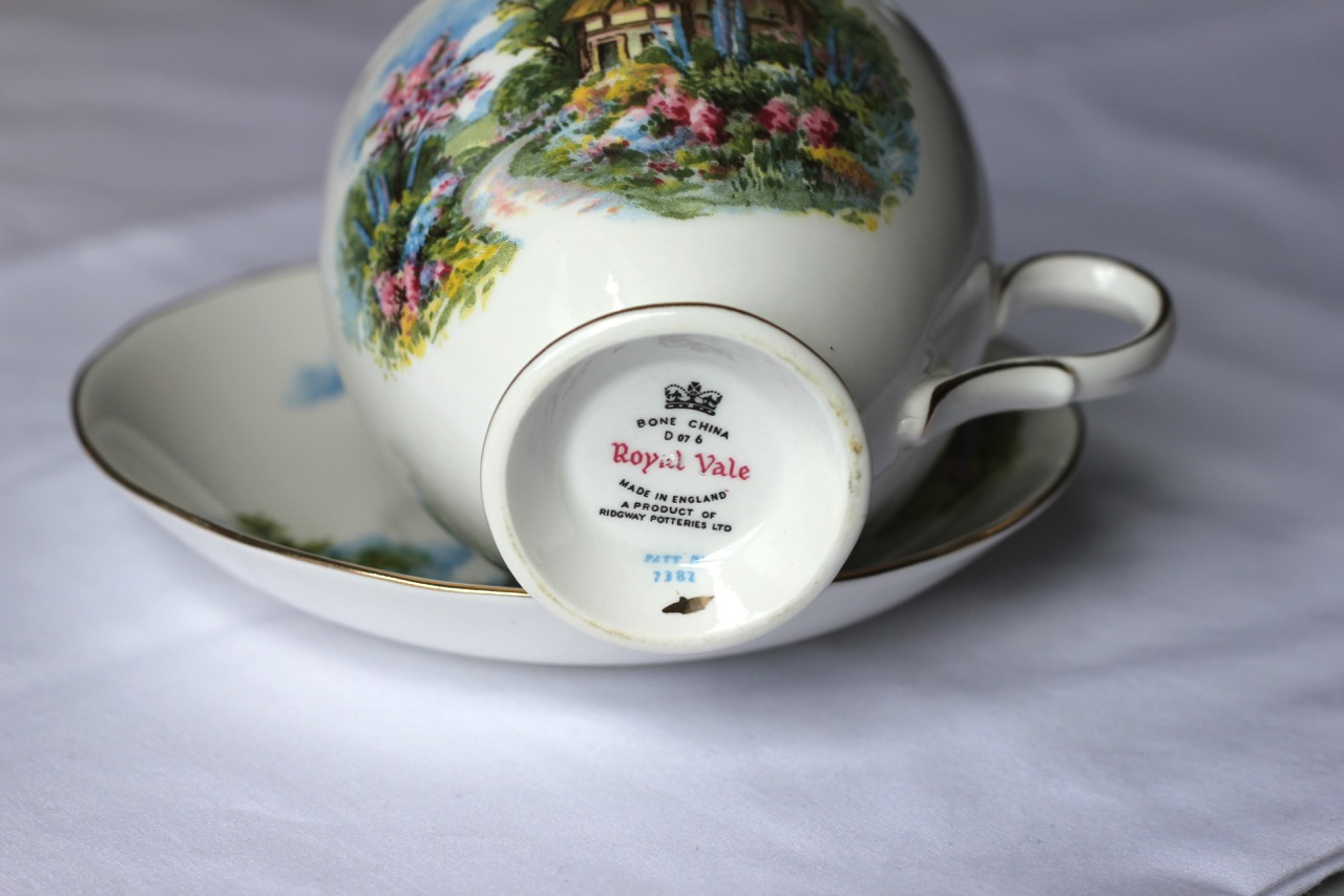 Previous Image Next Image Ridgway Potteries – Royal Vale – Royal standard – cottage scene, Ridgway Potteries – Royal Vale – featuring cottage scene, Pattern no. 7382, Style A